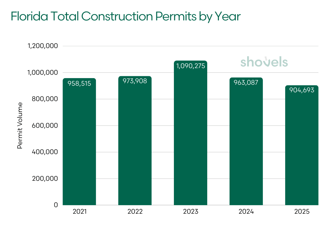 That is not a rounding error. That is a structural pullback in new housing formation that will shape Florida’s supply picture through 2027.