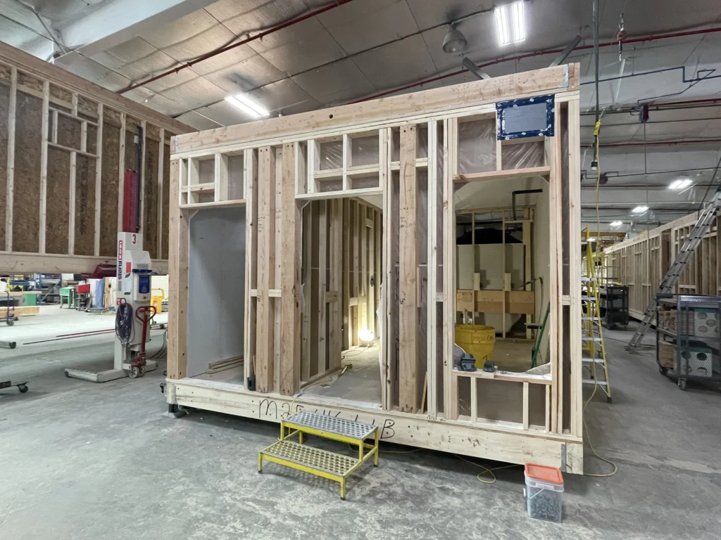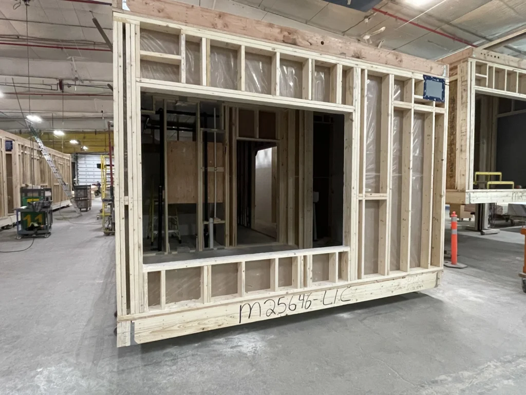 • These modules are fabricated in a factory with all mechanical systems installed and interiors completed, including flooring, cabinetry and appliances, before shipping to the site.
