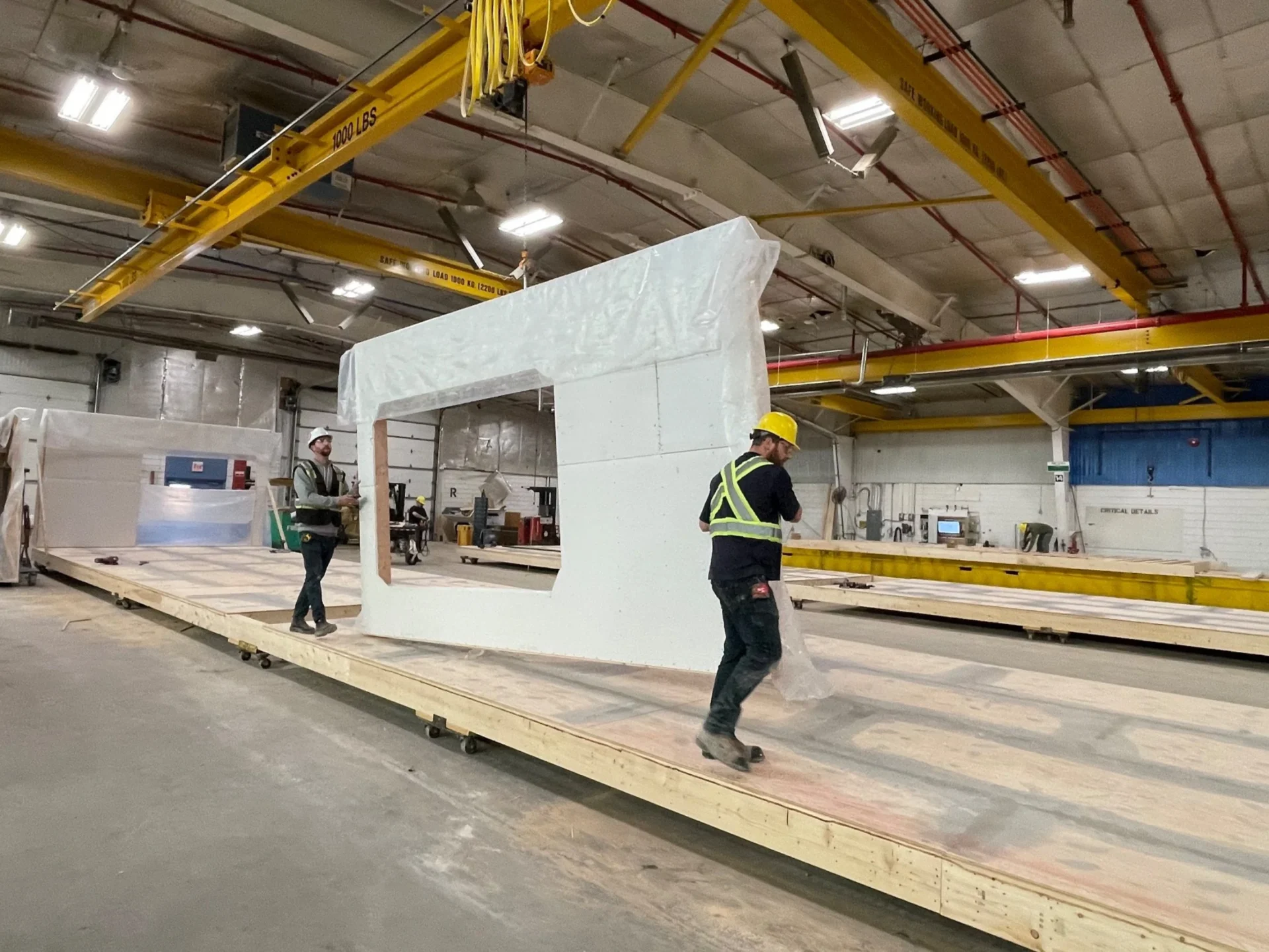 • Fabrication in of modules on a jig in a climate controlled environment improves quality and reduces material waste.