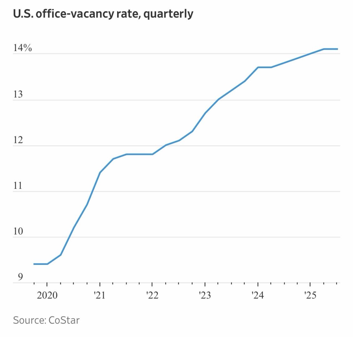 The U.S. office market is showing early signs of recovery, but only in select places. According to recent reporting from The Wall Street Journal, national vacancy rates are still near historic highs, and delinquency rates on office-backed loans have surged. Yet in a handful of prime submarkets, demand is firming and tenants are willing to pay a premium for high-quality space.